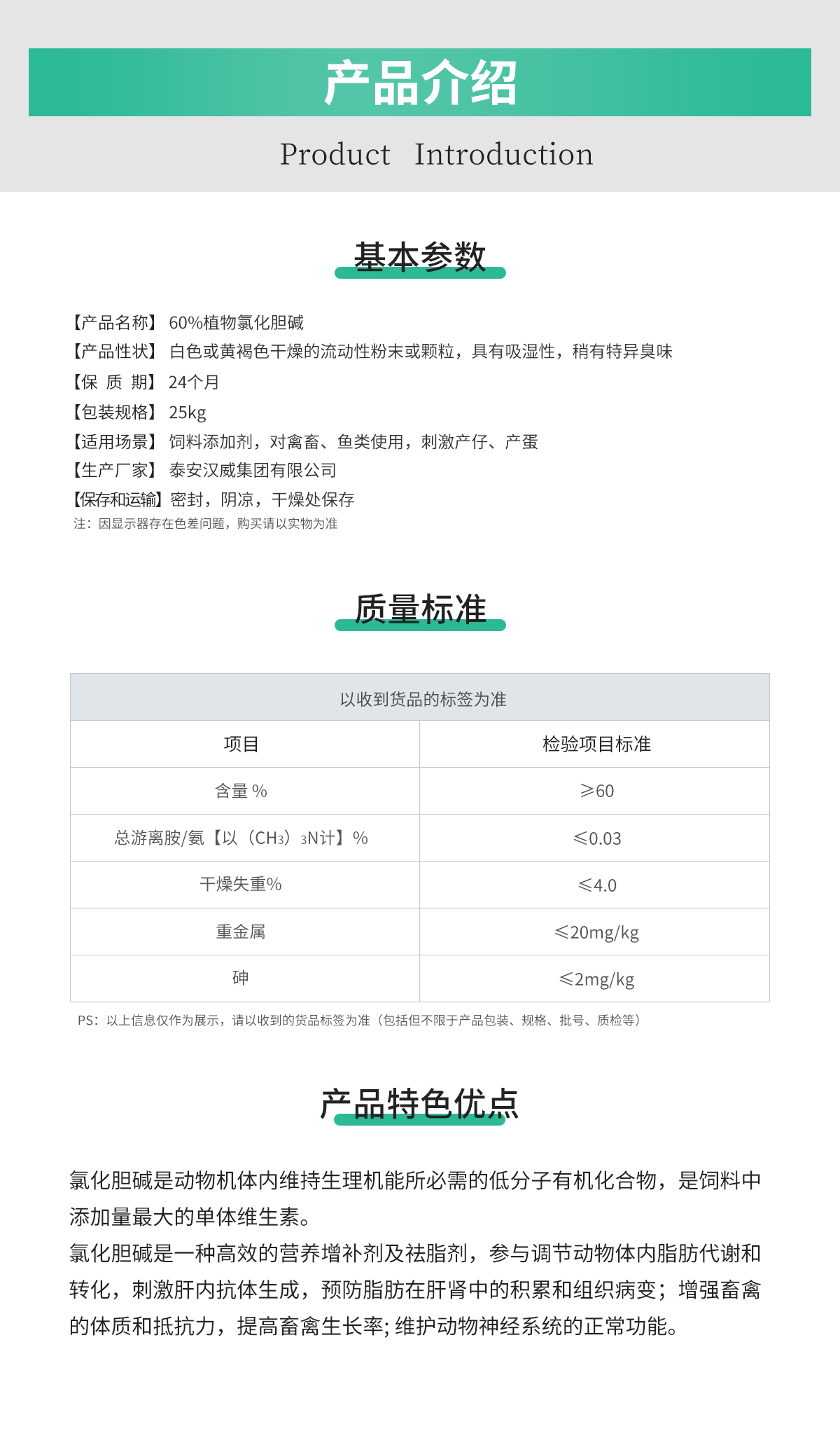 汉威集团 - 植物载体 氯化胆碱 60% 25KG/袋饲料级粉状