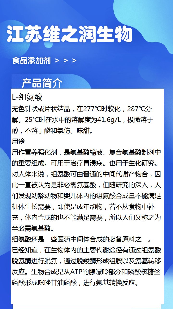 L-组氨酸生产厂家 氨基酸原料 食品添加剂营养强化剂